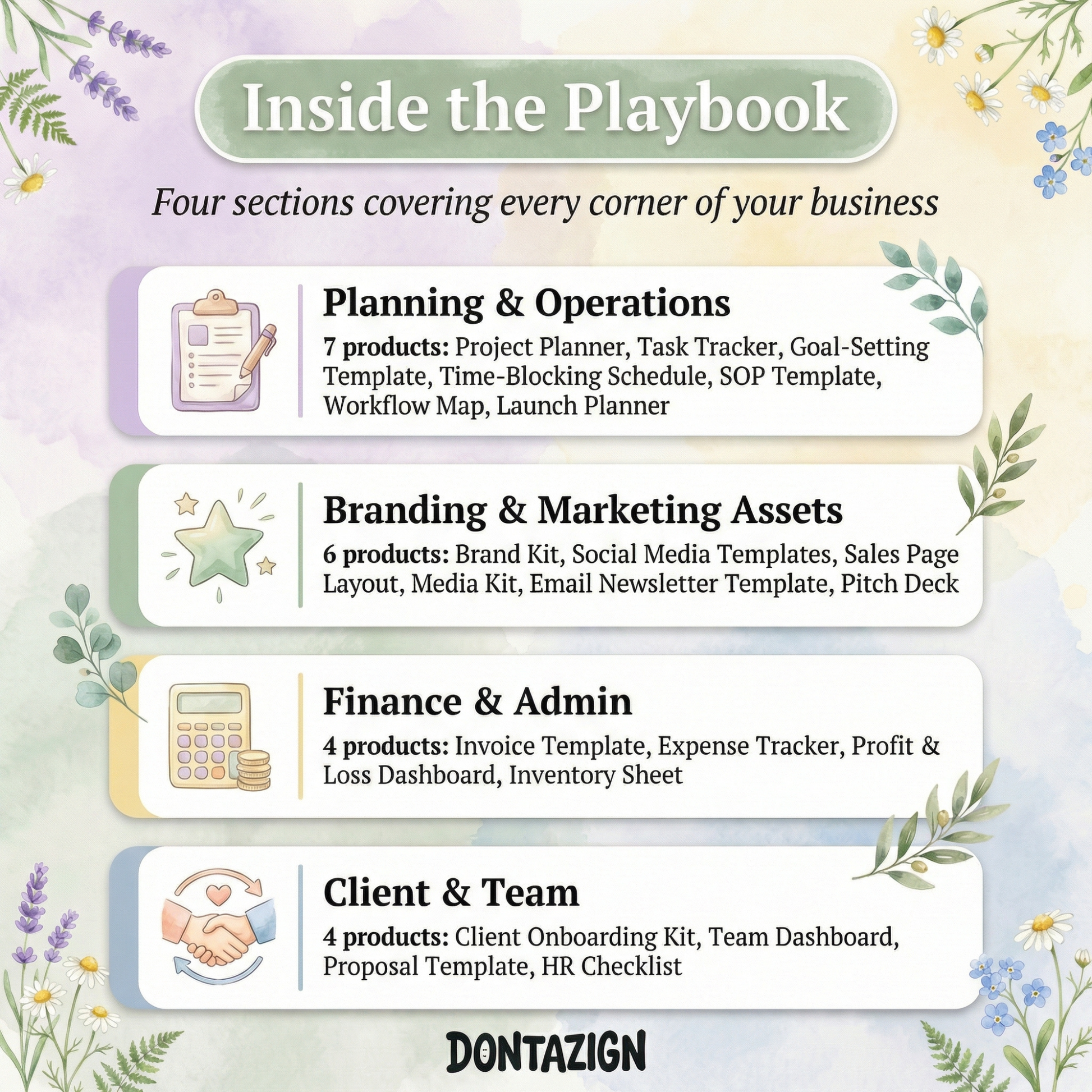 Inside this 90-page system, you’ll learn how to build 21 real business-focused digital products across 4 core categories — each broken down to its exact structure, layout, and purpose.